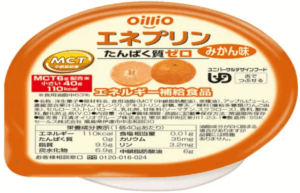 40g、110kcal、当院ではタンパク0gのものを採用、タンパク制限のかたに。MCT6g配合。みかん味。