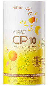125ml、80kcal、タンパク12g、コラーゲンペプチド10g。鉄5mg、亜鉛12mg、セレン50μg、ビタミンC500mg。ミックスフルーツ味。